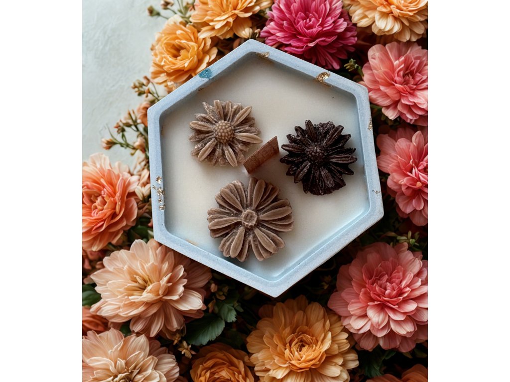 Dekorace na svíčce jsou též vyrobeny ze sojového vosku, tudíž je uvnitř celá hořlavá.