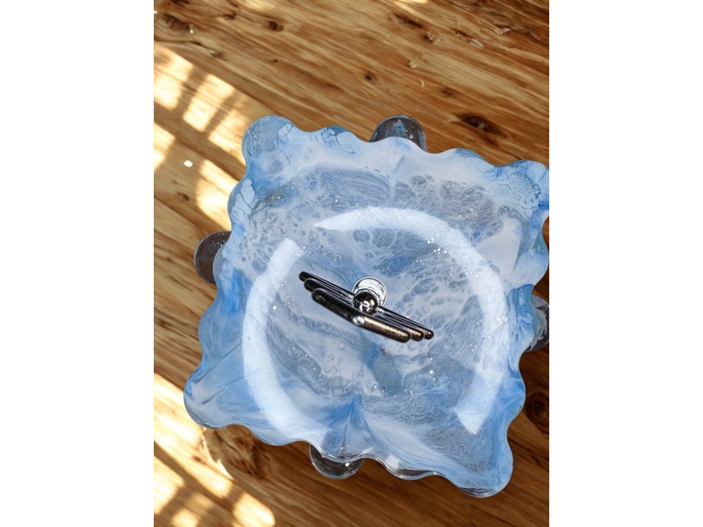 Tento elegantní třípatrový podnos čtvercového tvaru byl vyhotoven na zakázku pro naši milou klientku. 💙🤍
