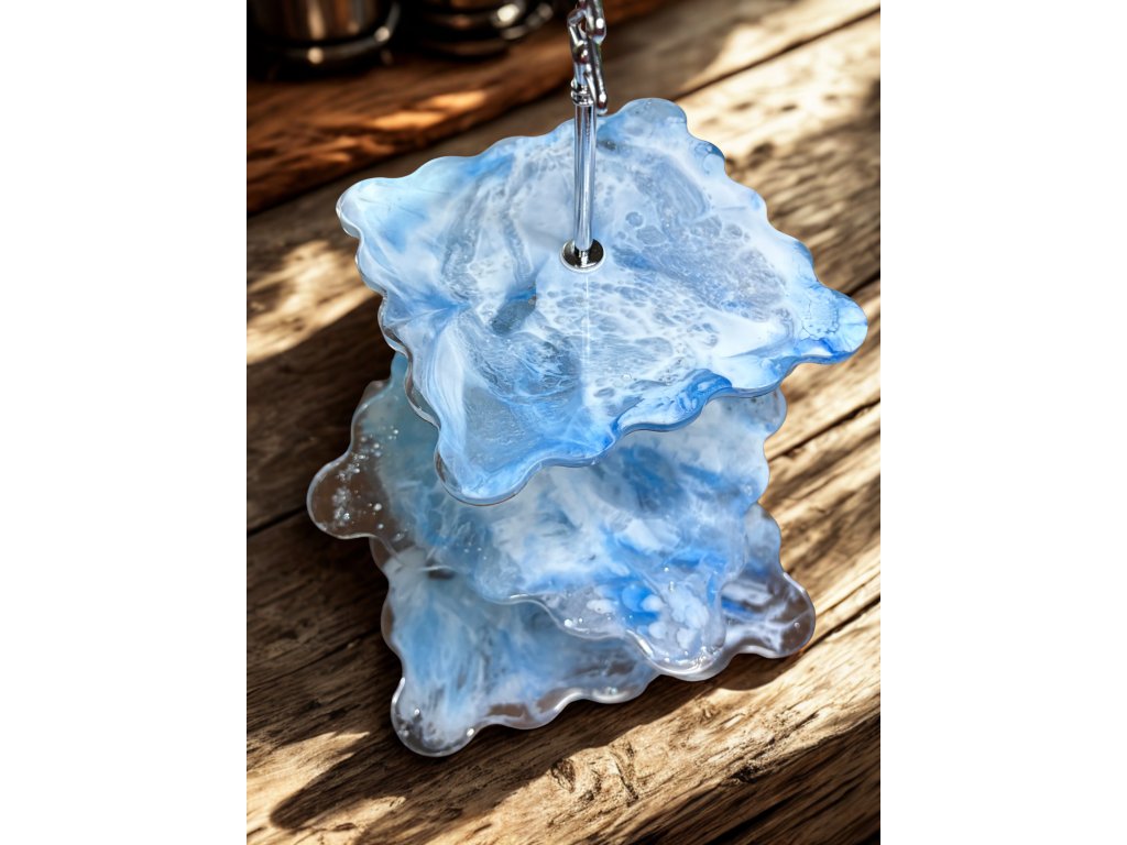 Třípatrový podnos v modro-bílo-stříbrných tónech